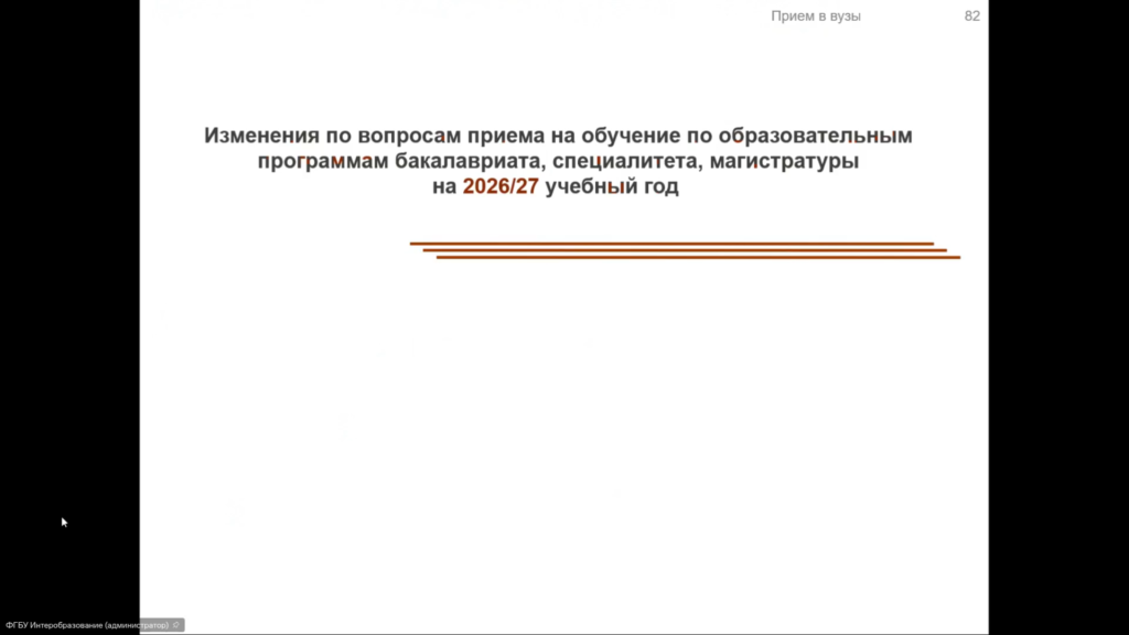8 декабря 2025 года Министерством науки и высшего образования РФ был проведен вебинар по вопросам, касающимся проведения приемной кампании следующего учебного года. В рамках мероприятия рассмотрены основные изменения, которые регламентируют набор абитуриентов по программам бакалавриата, специалитета и магистратуры в высшие учебные заведения страны.