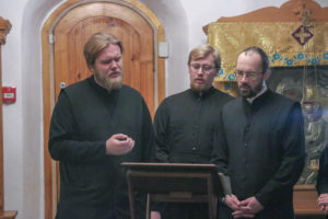 Песнопения исполнил хор учащихся бакалавриата семинарии под управлением чтеца Артемия Коровина.