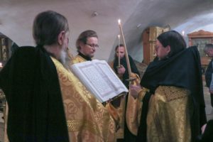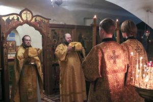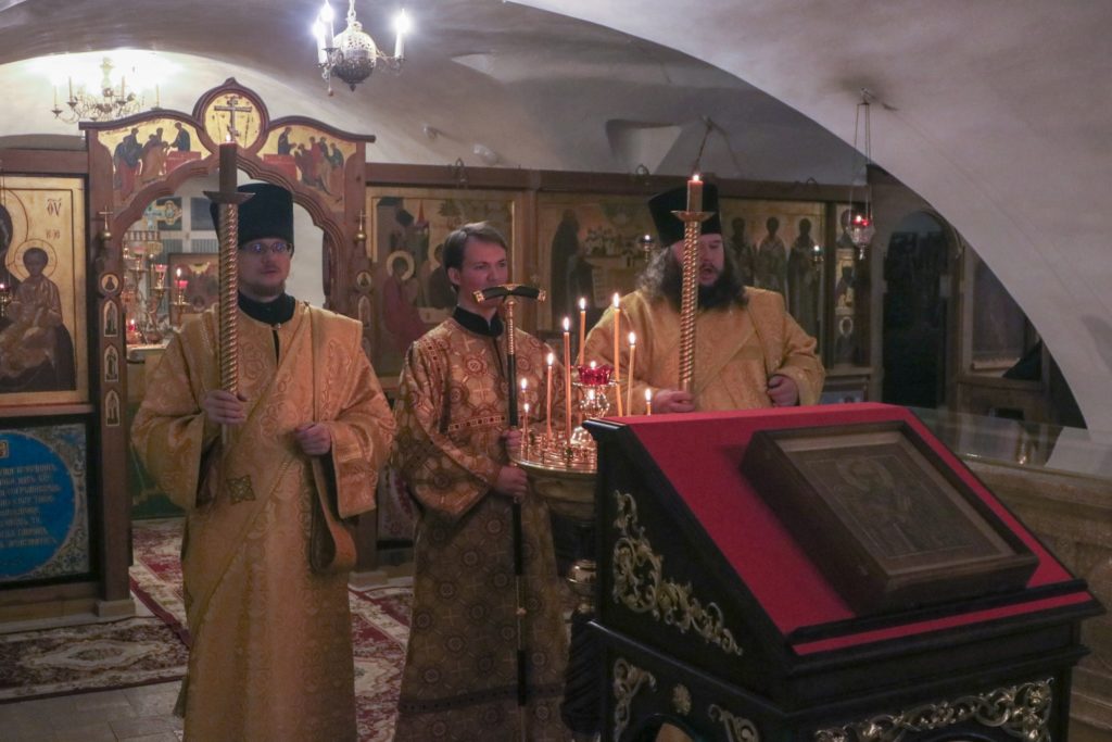 Всенощное бдение накануне возглавил наместник обители, проректор по воспитательной работе Вологодской духовной семинарии игумен Ферапонт (Широков) в сослужении братии монастыря в священном сане.