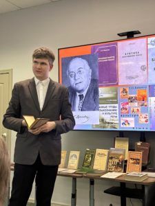 С историей литературного общества «Беседа любителей русского слова» слушателей ознакомила ведущий проекта, сотрудник Областной научной библиотеки Наталья Валентиновна Швецова. О вкладе «Московского лингвистического кружка» в отечественную (и мировую) филологическую науку рассказал кандидат филологических наук, доцент кафедры гуманитарных и естественнонаучных дисциплин, заведующий заочным сектором обучения Вологодской духовной семинарии Александр Владимирович Загуменнов.