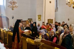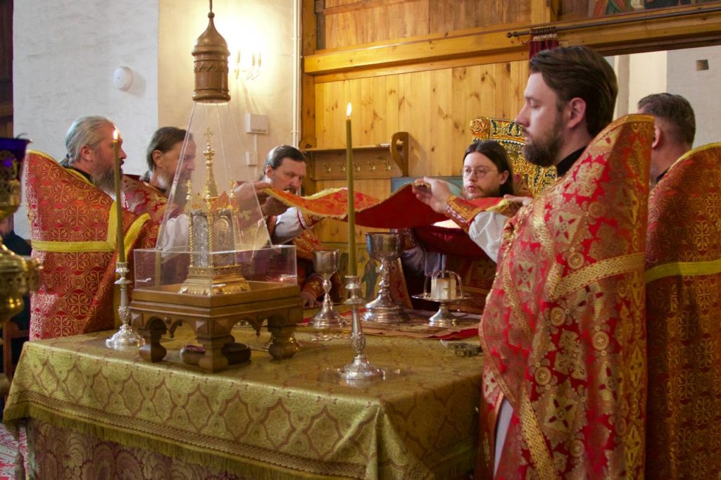 На сугубой ектении за литургией были возглашены прошения о восстановлении мира, а также за архипастырей и пастырей гонимой Украинской Православной Церкви, после чего была вознесена молитва о Святой Руси.