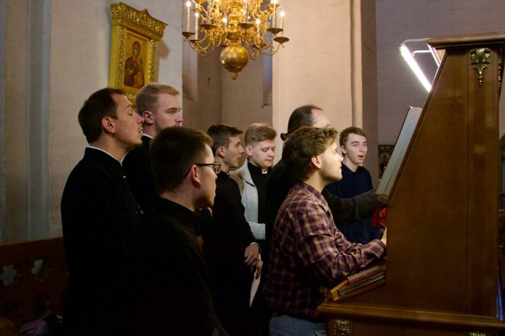 Песнопения праздника исполнил мужской хор студентов семинарии и насельников обители под управлением чтеца Артемия Коровина.