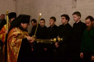 11 сентября, в день памяти Усекновения главы Пророка, Предтечи и Крестителя Господня Иоанна, студенты Вологодской духовной семинарии молились за богослужениями в Спасском соборе Спасо-Прилуцкого Димитриева мужского монастыря.