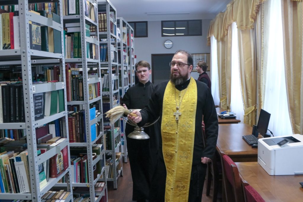 В праздник Крещения Господня ректор семинарии протоиерей Алексий Ольховников совершил традиционное окропление помещений семинарии освященной водой.