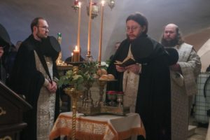 Всенощное бдение накануне и праздничную Божественную литургию по чину свт. Василия Великого возглавил наместник обители, проректор по воспитательной работе игумен Ферапонт (Широков). Ему сослужили: благочинный монастыря иеромонах Иларион (Свиридов), иеромонах Онуфрий (Федюнцов), иеромонах Иосиф (Ожиганов), ризничий иеродиакон Димитрий (Христофоров).