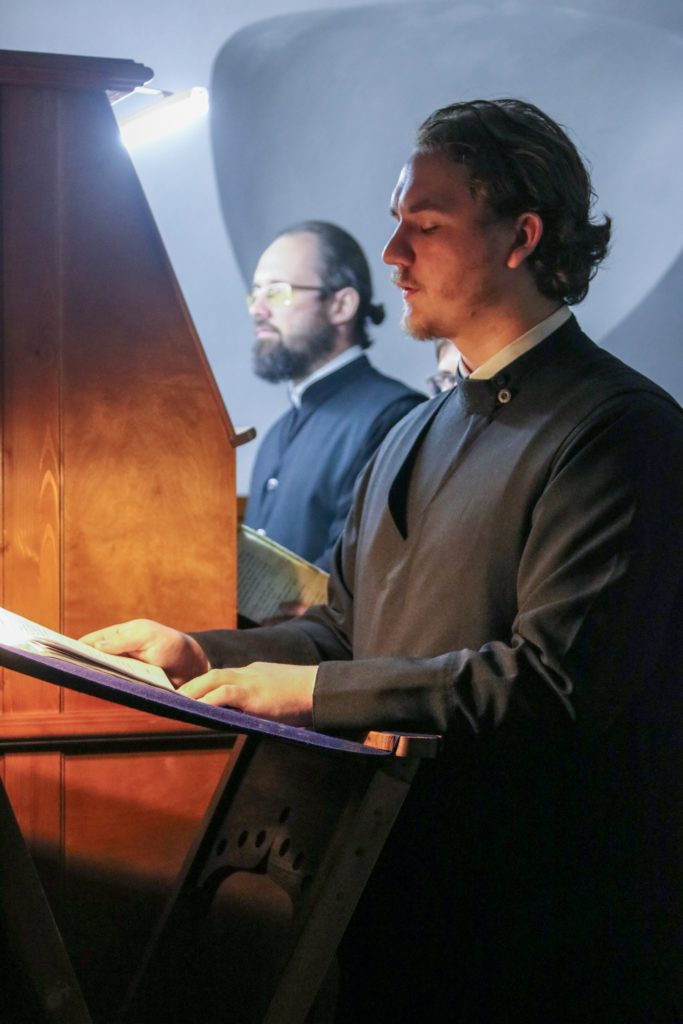 Богослужебные песнопения исполнил мужской хор студентов семинарии и братии обители под управлением чтеца Артемия Коровина.