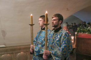 Всенощное бдение накануне возглавил наместник монастыря, проректор по воспитательной работе Вологодской духовной семинарии игумен Ферапонт (Широков).