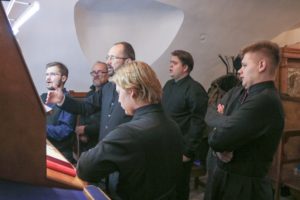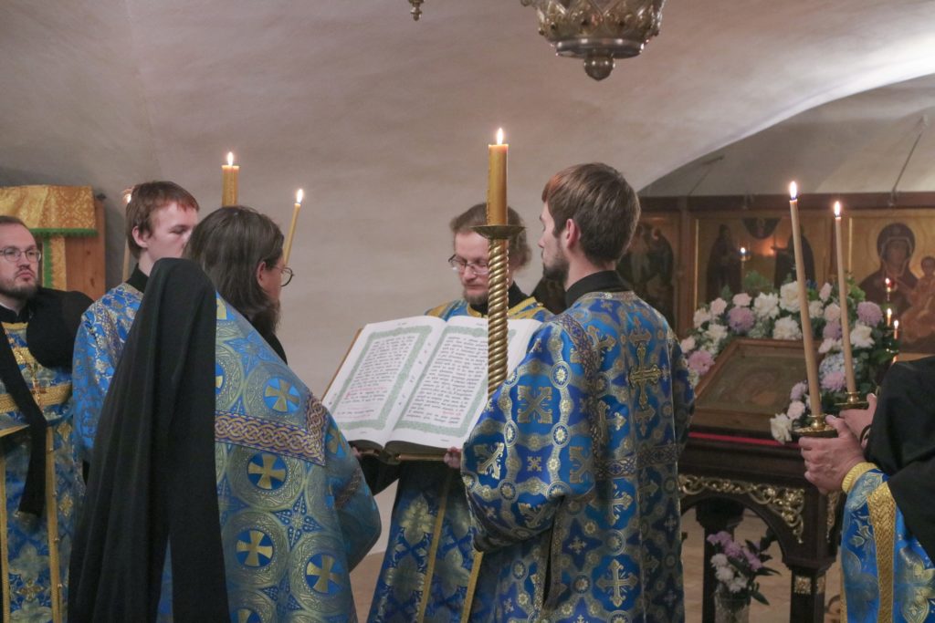 Богослужебные песнопения исполнил мужской хор студентов семинарии и братии обители под управлением чтеца Артемия Коровина.