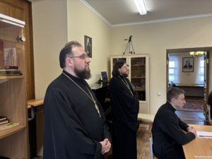 Инспекционную проверку проведения работы в Вологодской духовной семинарии осуществлял руководитель административного секретариата Учебного комитета Николай Николаевич Свокс.