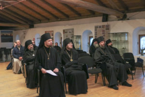 В работе круглого стола приняли участие игумены и игумении монастырей Вологодской митрополии, монашествующие, а также студенты Вологодской духовной семинарии.