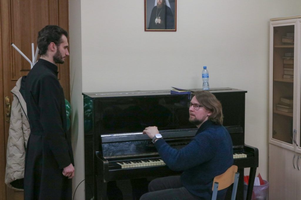04 марта 2026 г. студенты Вологодской духовной семинарии в рамках практико-ориентированного пастырского семинара «Актуальные вопросы пастырского служения» посетили занятие по постановке голоса, которое провел Н. К. Могилка – солист мужского хора Вологодской филармонии, выпускник Вологодского государственного педагогического университета по направлению «Музыкальное образование».