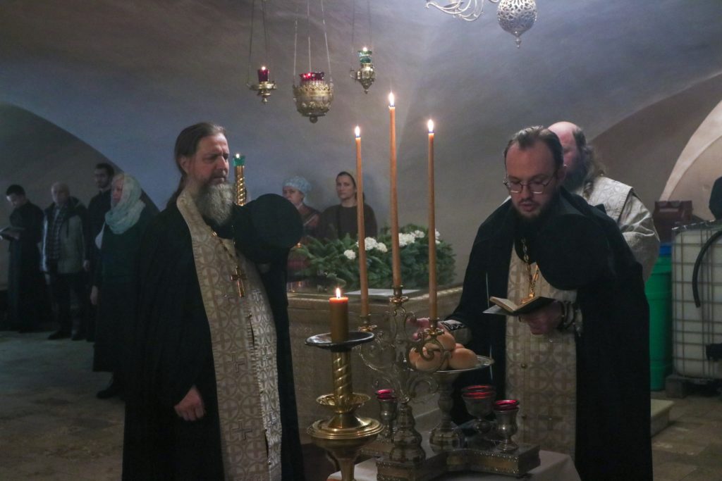 Всенощное бдение накануне и Божественную литургию возглавил благочинный монастыря иеромонах Иларион (Свиридов). Ему сослужили иеромонах Онуфрий (Федюнцов), доцент кафедры библейско-богословских дисциплин иерей Даниил Горячев, иеродиакон Димитрий (Христофоров).