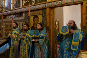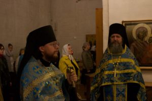 На сугубой ектении за литургией были возглашены прошения о восстановлении мира, а также за архипастырей и пастырей гонимой Украинской Православной Церкви, после чего была вознесена молитва о Святой Руси