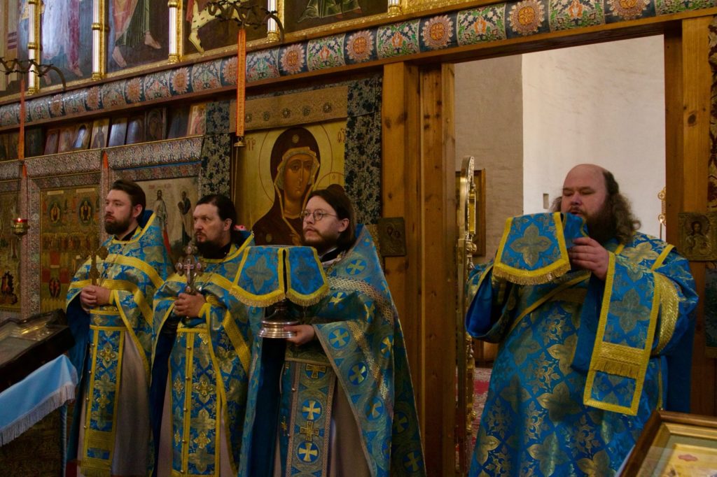30-31 августа 2025 года, в неделю 12-ю по Пятидесятнице, студенты Вологодской духовной семинарии молились за воскресными богослужениями в Спасском соборе Спасо-Прилуцкого Димитриева мужского монастыря. Всенощное бдение накануне и Божественную литургию возглавил наместник обители, проректор по воспитательной работе семинарии игумен Ферапонт (Широков). Ему сослужили: благочинный обители иеромонах Мартиниан (Киселев), келарь монастыря иеромонах Иларион (Свиридов), насельник обители иеромонах Онуфрий (Федюнцов), иерей Артемий Бушковский, иеродиакон Димитрий (Христофоров), иеродиакон Иосиф (Ожиганов).