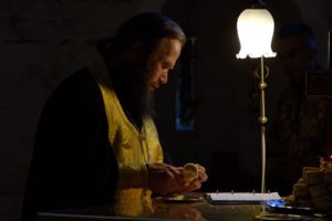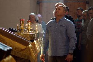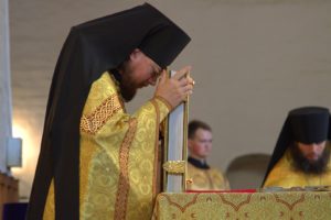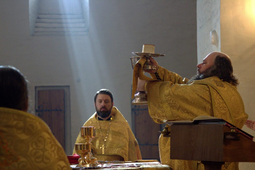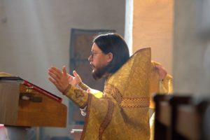 На сугубой ектении за литургией были возглашены прошения о восстановлении мира, а также за архипастырей и пастырей гонимой Украинской Православной Церкви, после чего была вознесена молитва о Святой Руси.