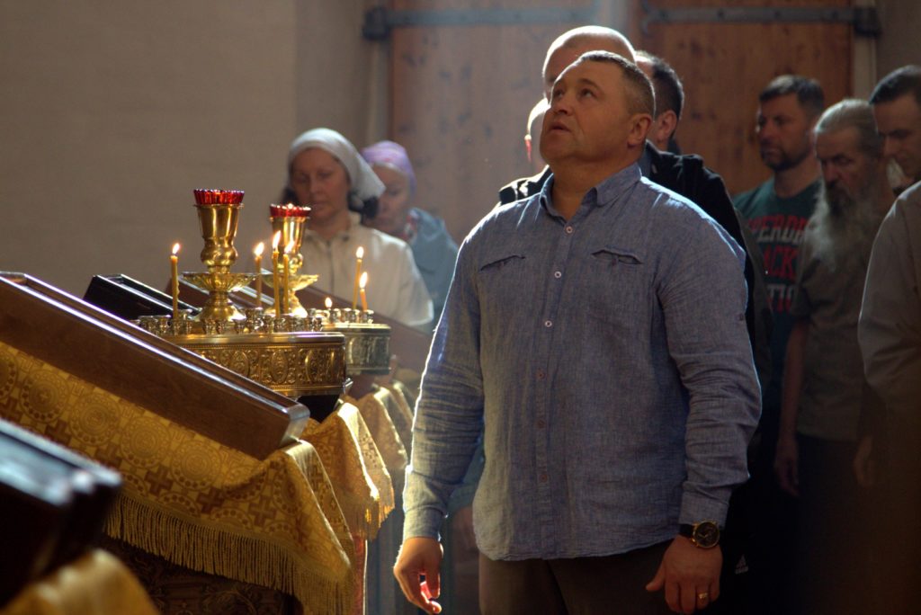 За воскресным богослужением пел мужской хор братии монастыря и студентов семинарии под управлением регента чтеца Артемия Коровина.