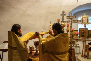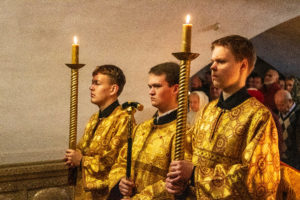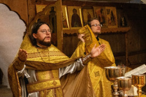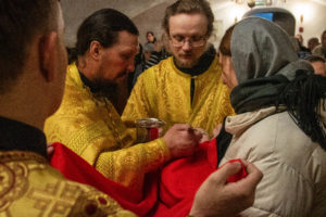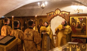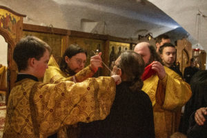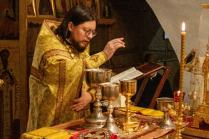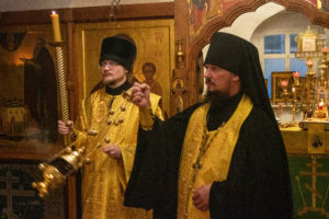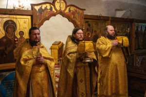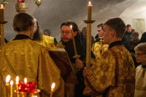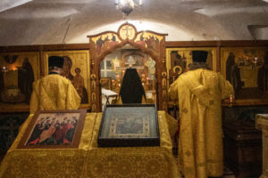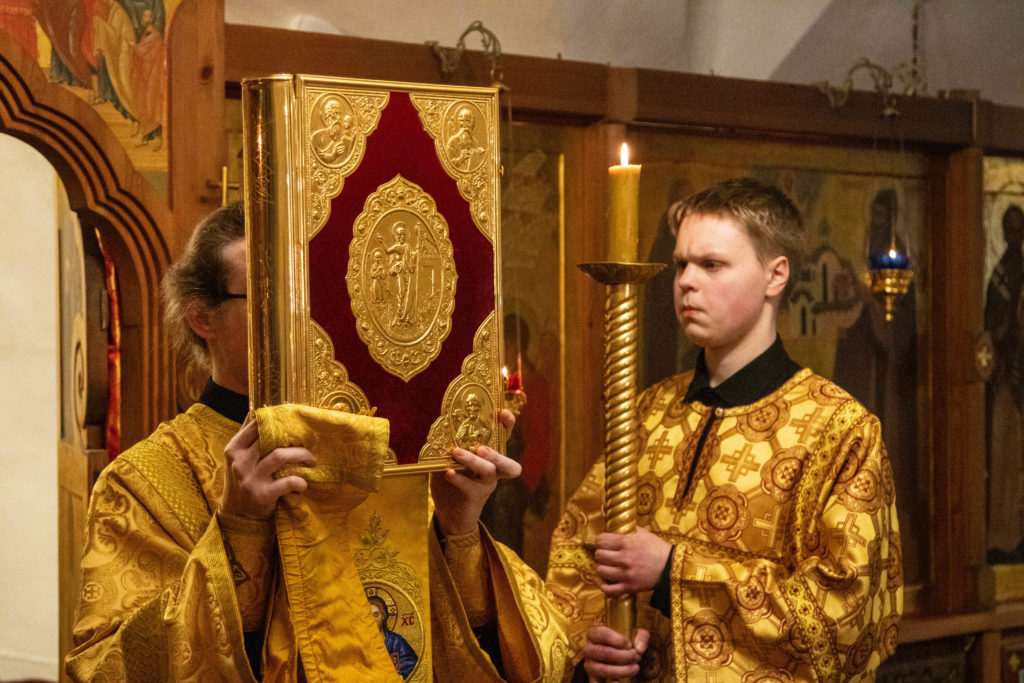 На сугубой ектении были возглашены особые прошения о восстановлении мира, а также за архипастырей и пастырей гонимой Украинской Православной Церкви, после чего была вознесена молитва о Святой Руси.