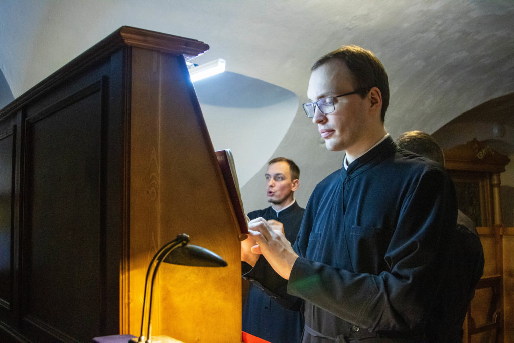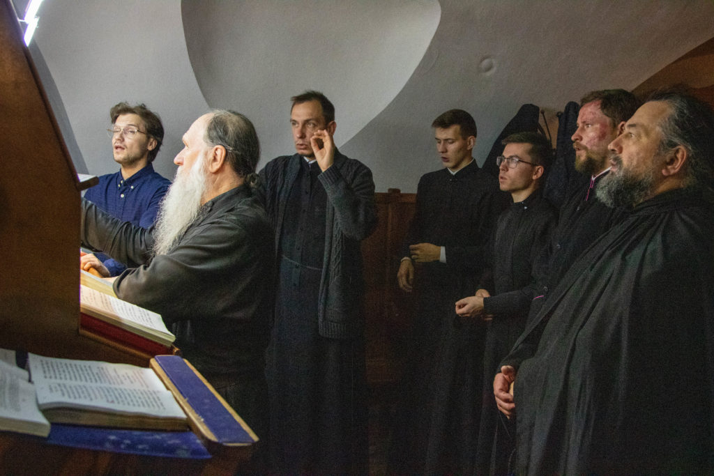 Богослужебные песнопения исполнил мужской хор студентов семинарии и братии обители под управлением проректора по учебной работе Вологодской духовной семинарии чтеца А. В. Сартакова.