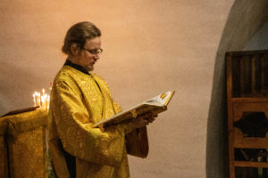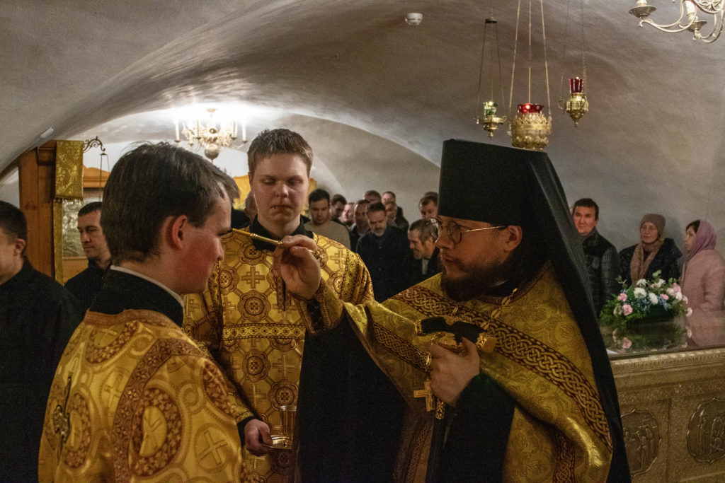 Проповедь по запричастном стихе произнес студент IV курса бакалавриата чтец Зосима Буйлов.