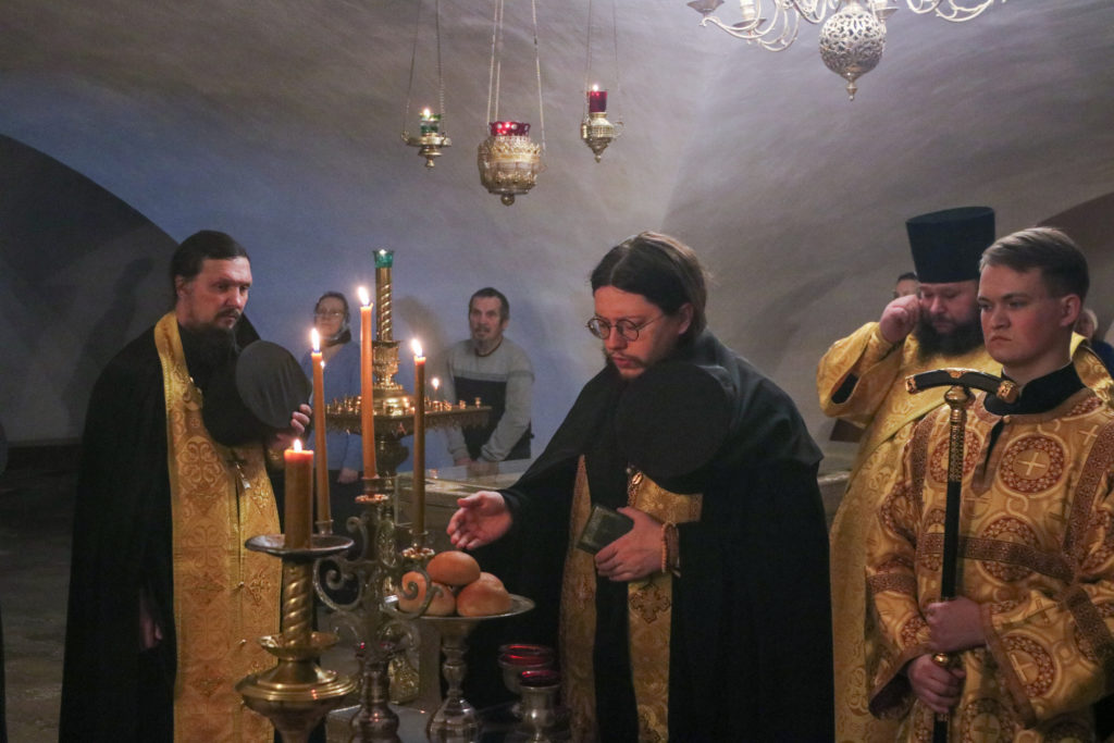 За богослужением пел мужской хор студентов семинарии и братии обители под управлением регента чтеца Артемия Коровина.