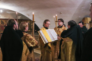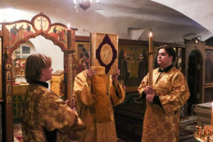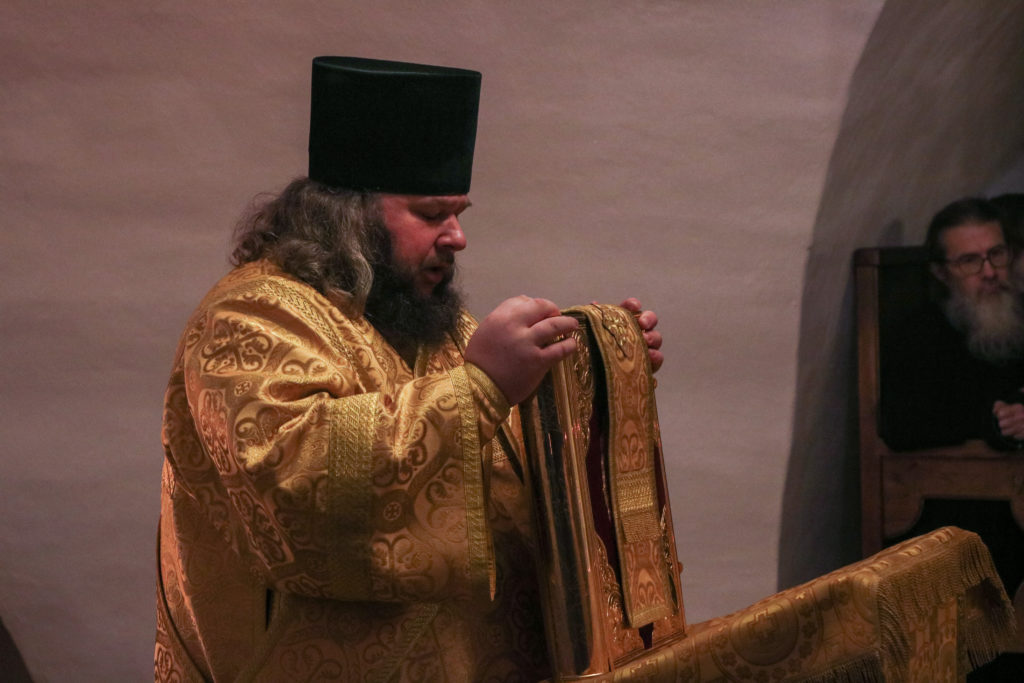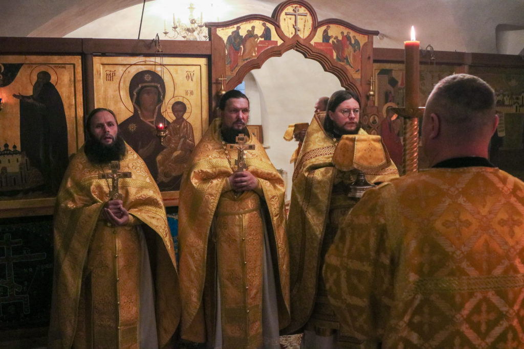 На сугубой ектении были возглашены особые прошения о восстановлении мира, а также за архипастырей и пастырей гонимой Украинской Православной Церкви, после чего была вознесена молитва о Святой Руси.