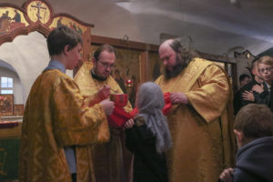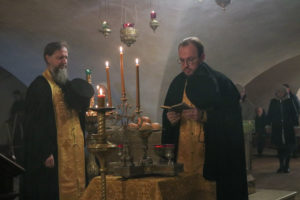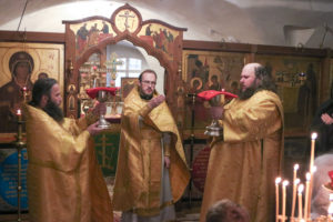 На сугубой ектении были возглашены особые прошения о восстановлении мира, а также за архипастырей и пастырей гонимой Украинской Православной Церкви, после чего была вознесена молитва о Святой Руси.