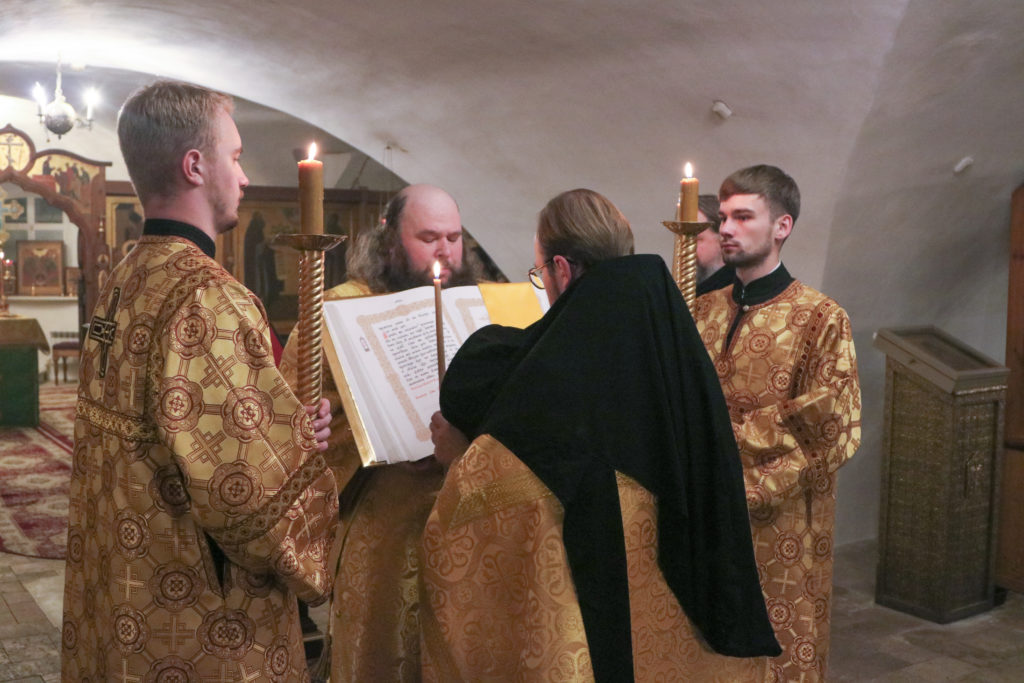 15—16 ноября 2025 года, в Неделю 23-ю по Пятидесятнице, студенты Вологодской духовной семинарии молились за воскресными богослужениями в Спасо-Прилуцком Димитриевом мужском монастыре.