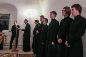 Песнопения праздника исполнил хор студентов духовной семинарии под управлением чтеца Артемия Коровина.