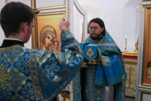 По окончании богослужения игумен Ферапонт поздравил молящихся с престольным праздником и поблагодарил за молитвенное участие в первом богослужении возрожденного храма.