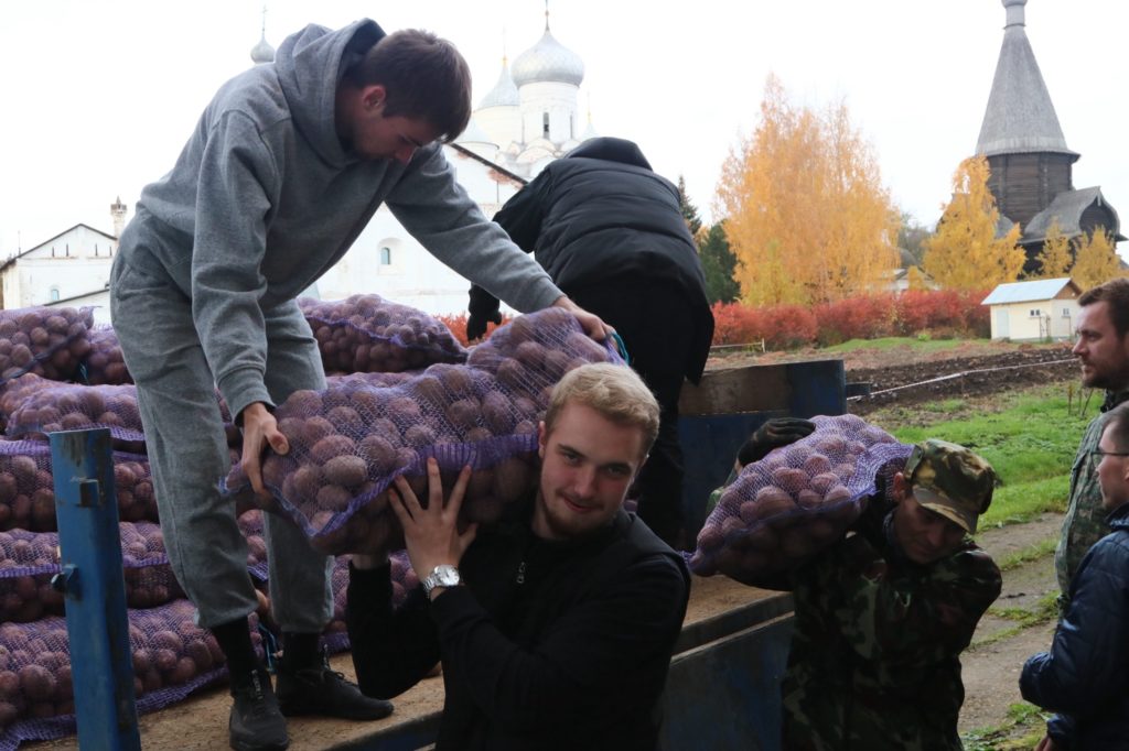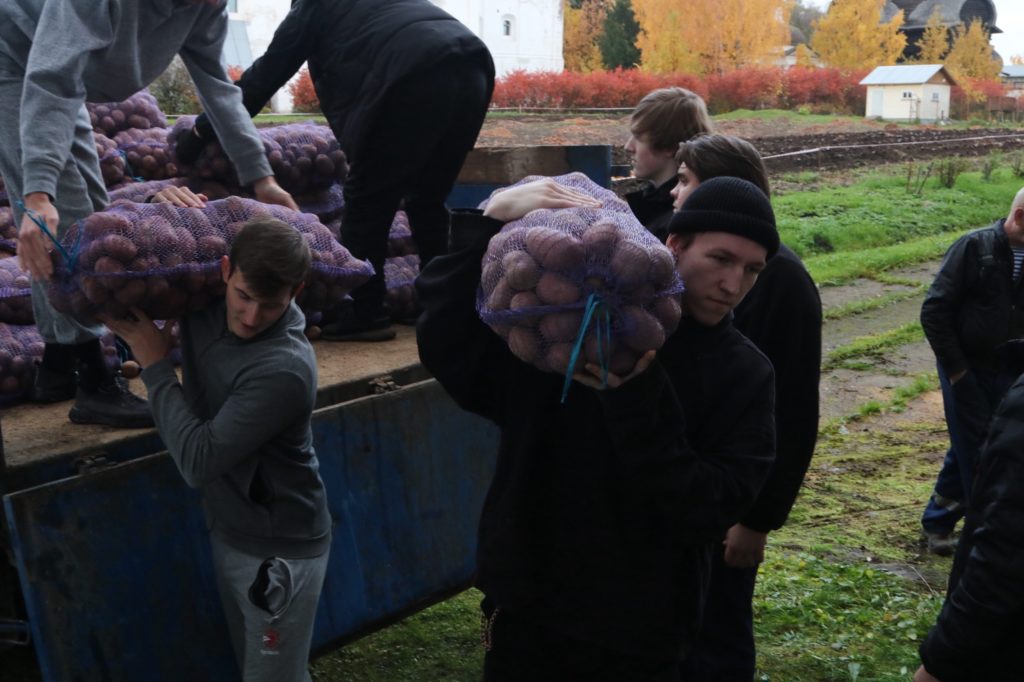 В разгрузке картофеля приняли участие насельники обители, студенты и представители администрации семинарии.